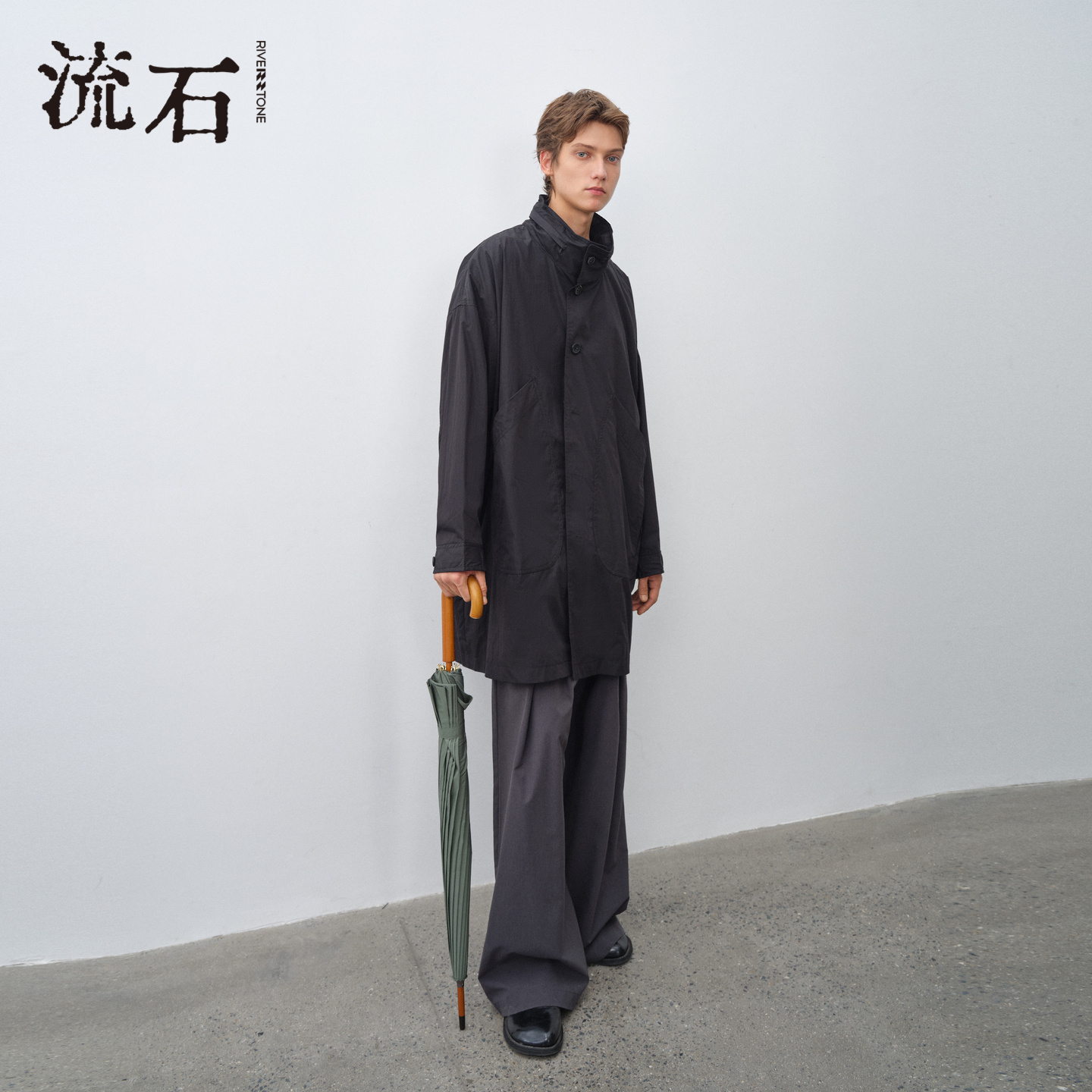 海上公路石纹肌理感风衣男士25年秋季中长款松弛休闲通勤廓形外套