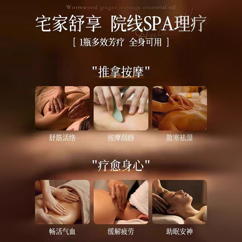 生姜艾草精油发热开背按摩精油刮痧推背全身体推拿油舒通经络免洗