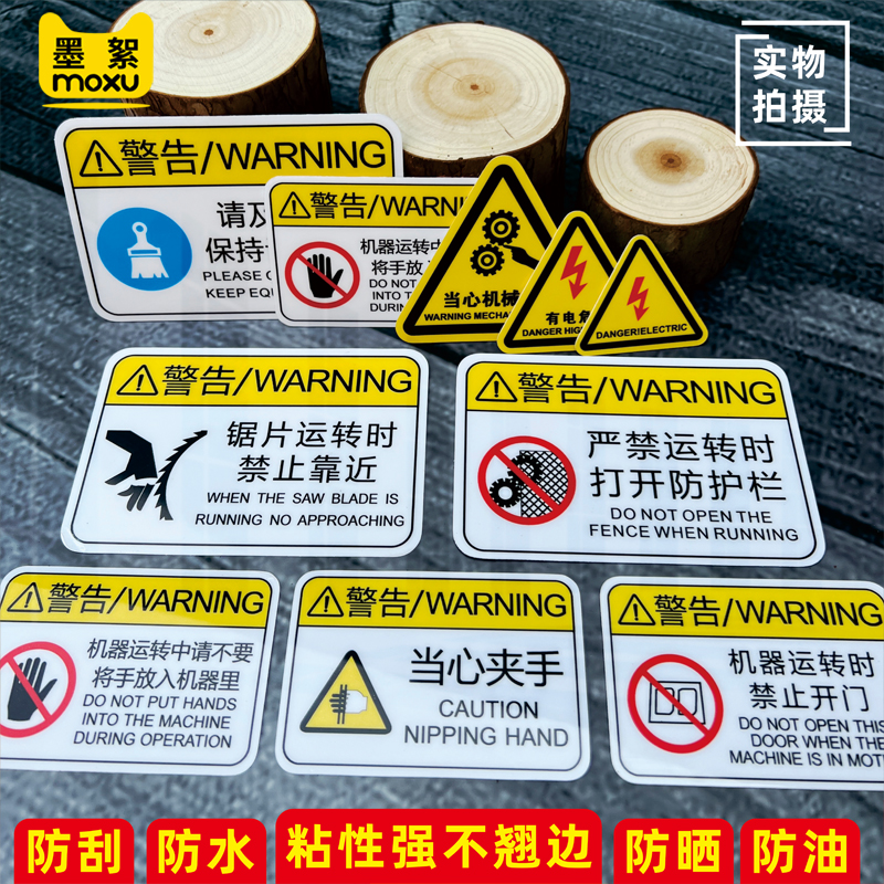 繁体字机械设备警告标签繁体英双语标识当心触电夹手伤手有电危险保养机器提示CNC机床安全警示PVC标识牌定制