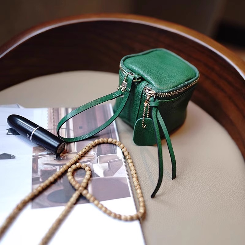 复古植鞣牛皮质感钥匙包迷你手拎大容量耳机硬币文玩收纳包零钱包