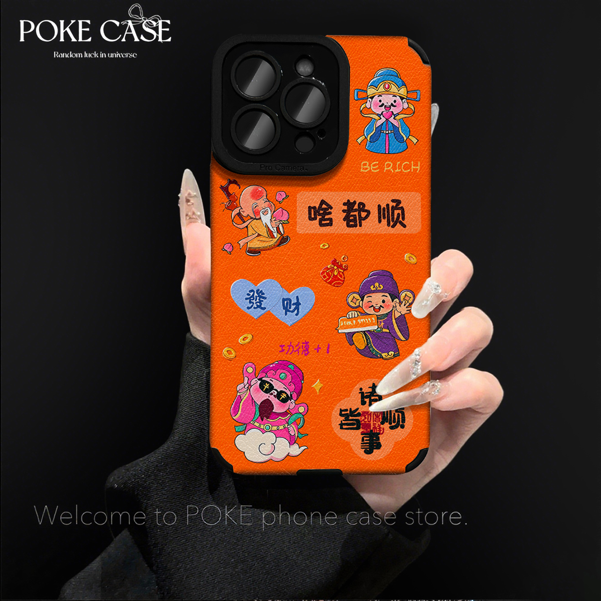 啥都顺财神创意瞳眼羊皮适用苹果17PROMAX手机壳华为NOVA10SE荣耀400vivoy30小米15oppor17新款全包防摔高级