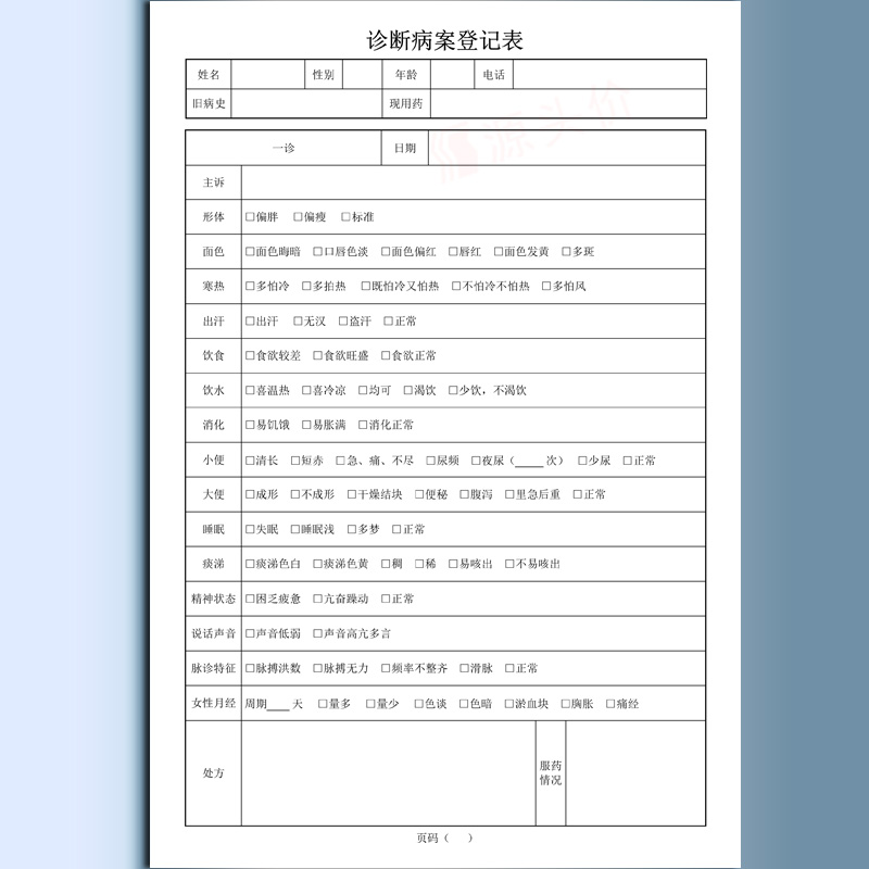 诊断病案登记表诊所医院患者就诊病情病例病史问诊记录本中医西医