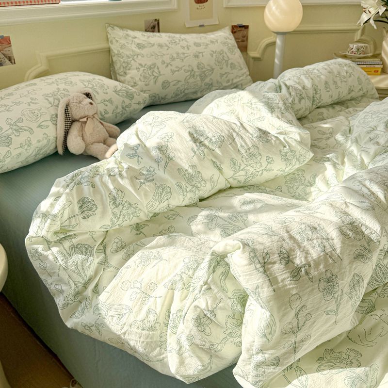 A类双层纱床上四件套纯棉全棉新款田园床单件被套被罩宿舍三件套4
