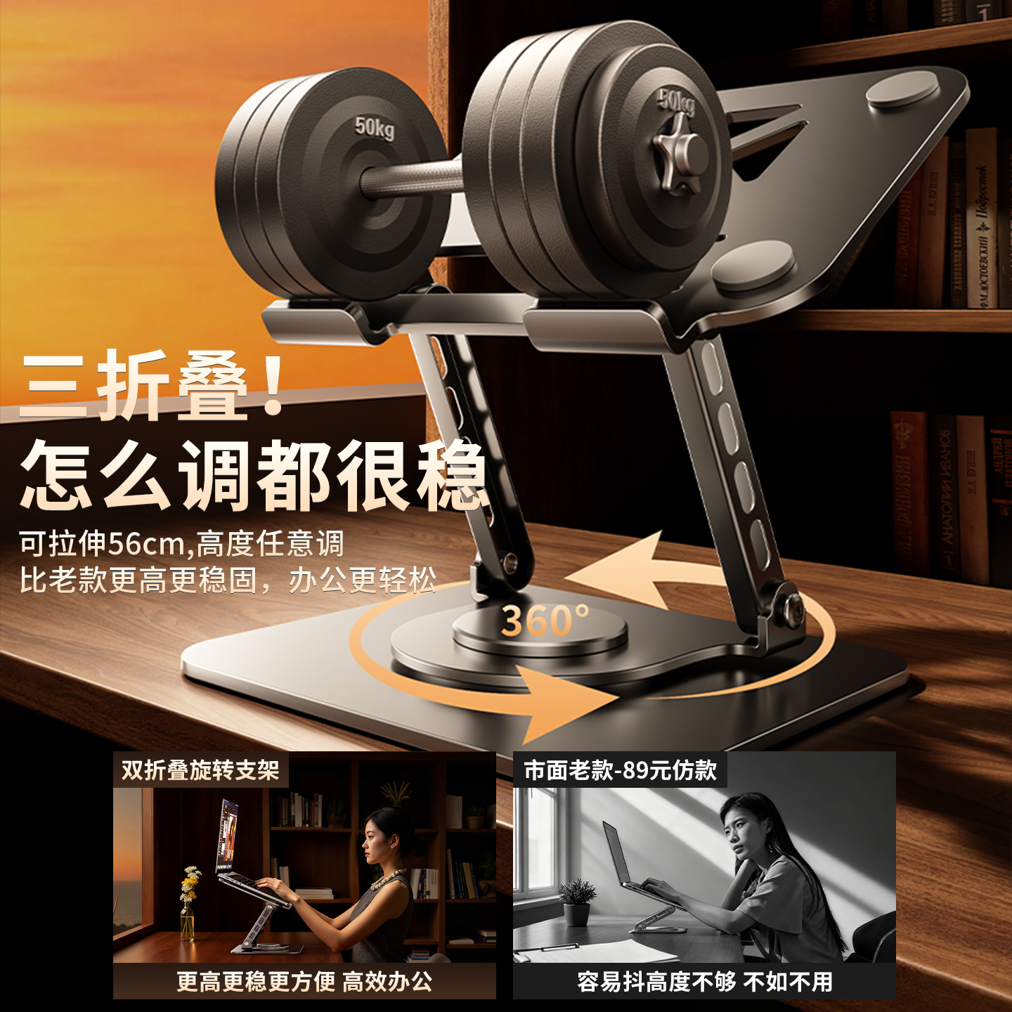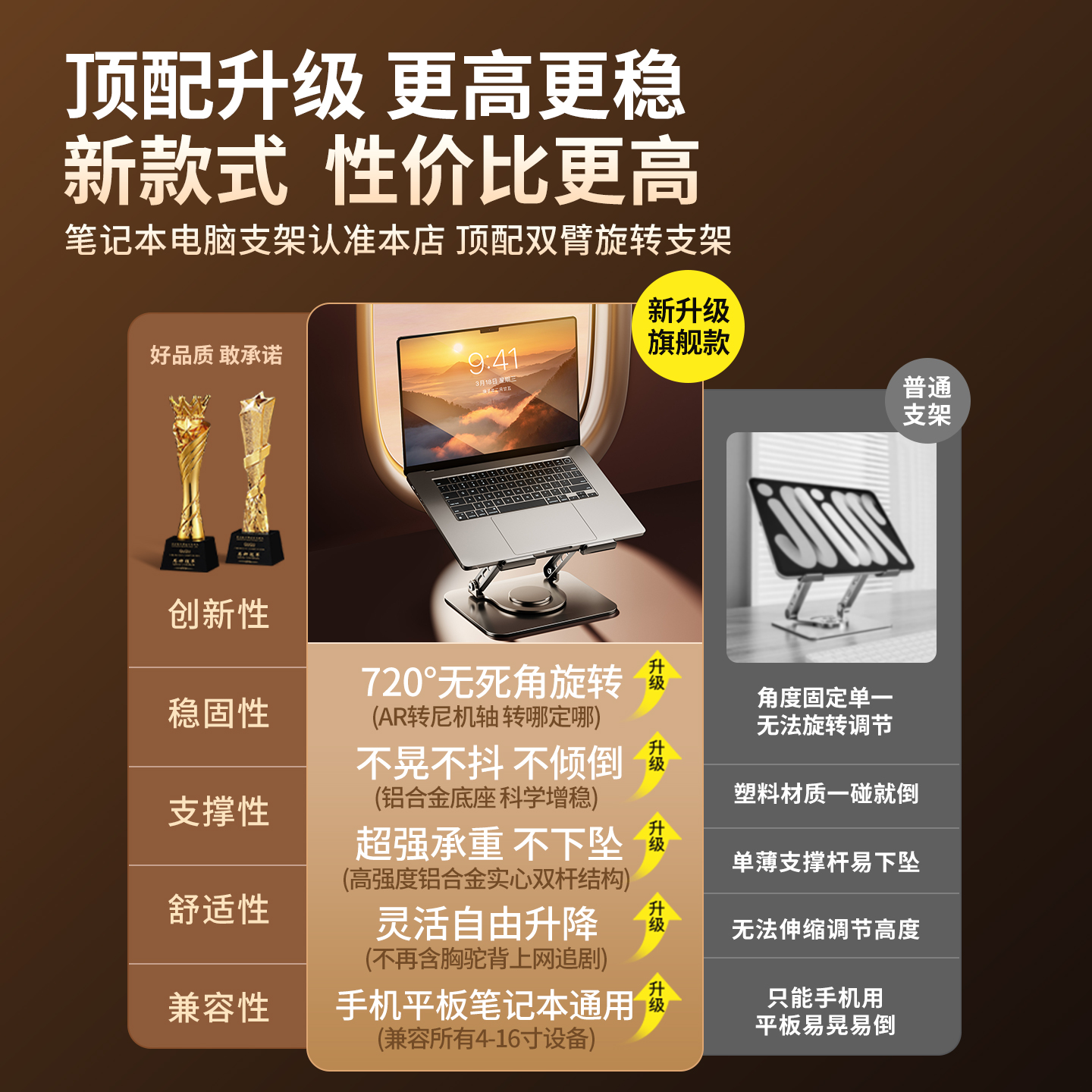 笔记本平板电脑支架360°旋转2025年新款办公室宿舍桌面散热增高架升降折叠托悬空学生iPad 学习机稳固支撑架
