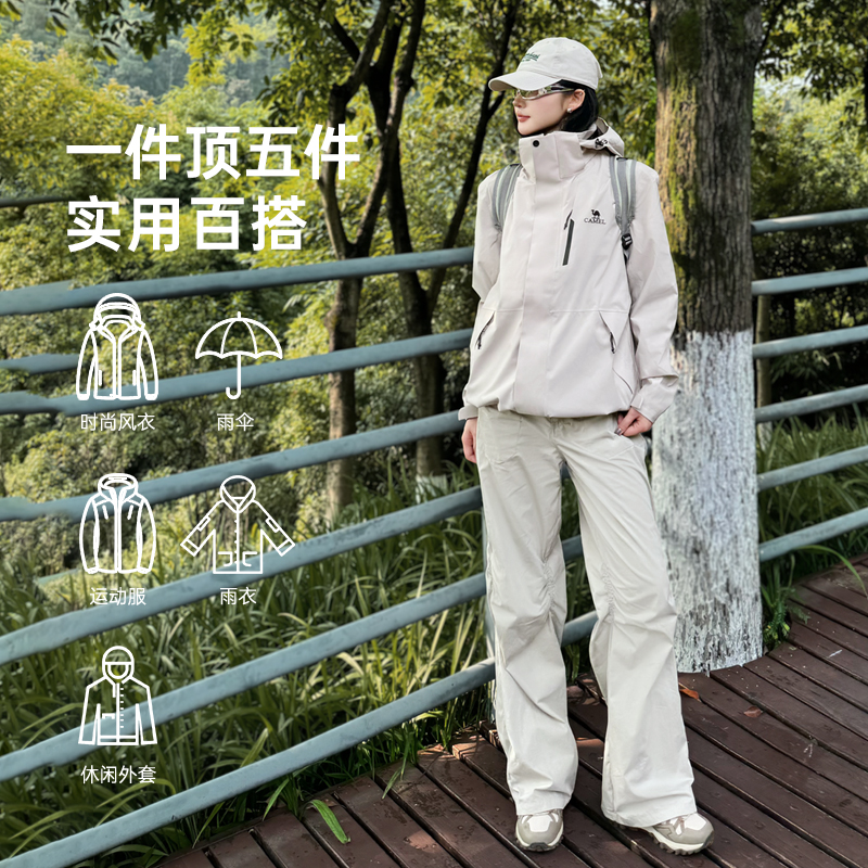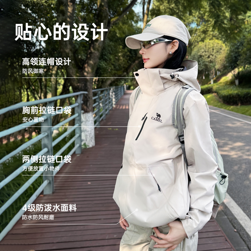 骆驼女装单层冲锋衣2025秋冬新款户外防风防水连帽立领男女款外套