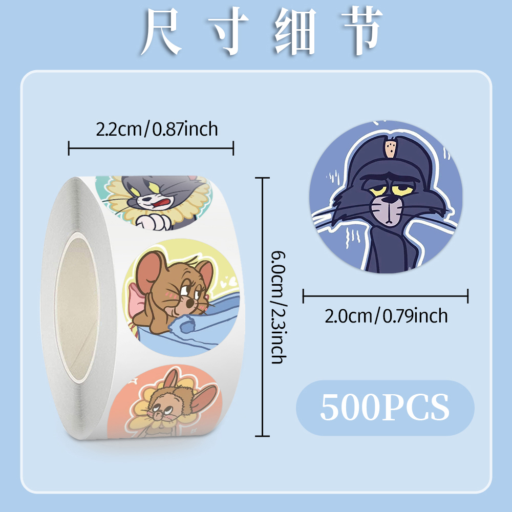 1000贴动画猫和老鼠动画卷卷贴纸卡通可爱杰瑞汤姆圆形封口贴diy