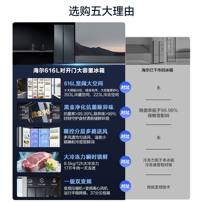 海尔冰箱以旧换新补贴616L双开门大容量冰箱家用一级变频风冷官方