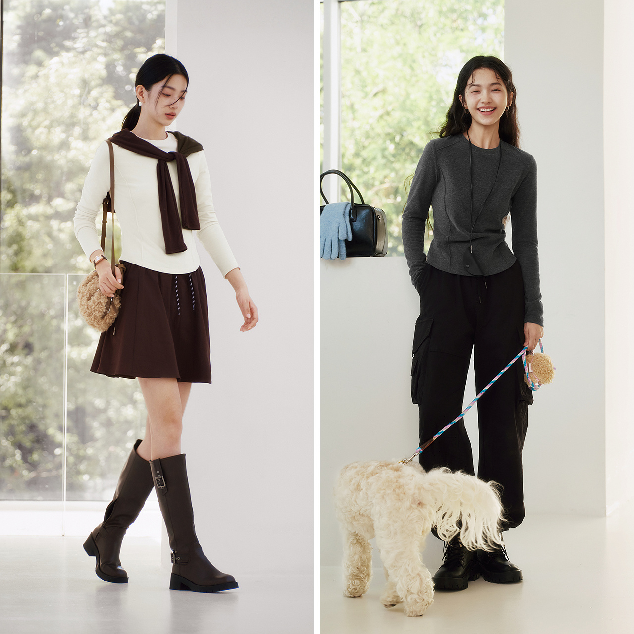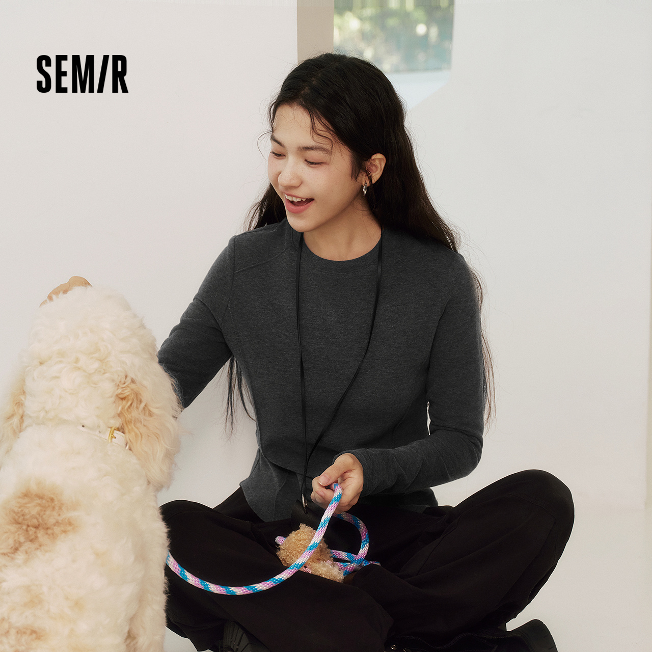 森马长袖T恤女冬鱼骨分割上衣正肩修身纯色2025新款显瘦软糯衣服