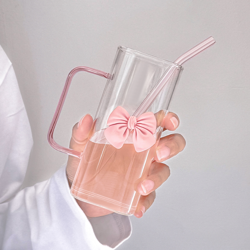 透明简约方形水杯女ins风带把手玻璃杯吸管杯子耐高温咖啡牛奶杯