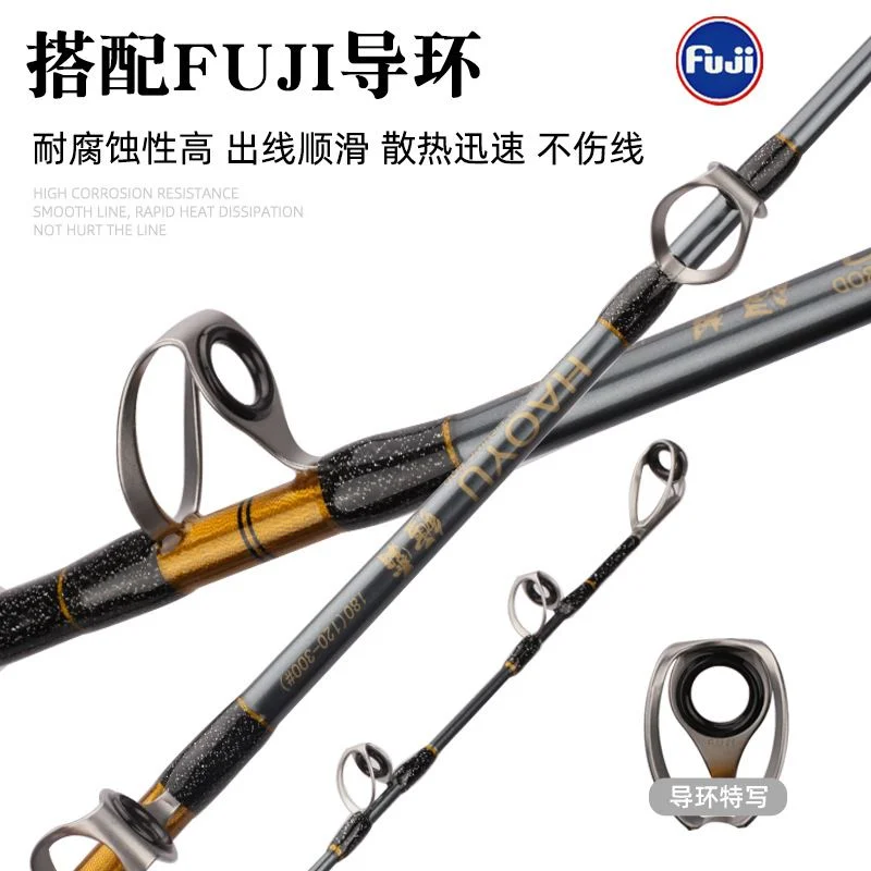 浩渔鳕霸深海船钓竿铝合金电绞竿手工船竿富士导眼实心树脂船杆