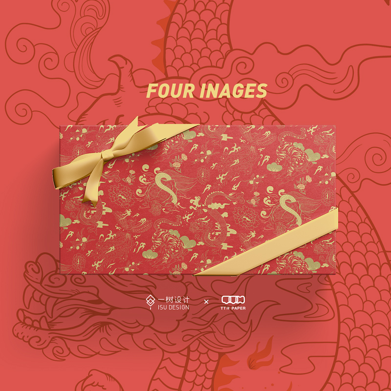 一树文创四象贺福复古中国风蓝色礼物包装纸龙凤红色喜庆新年婚礼结婚伴手礼盒礼品纸高颜值ins手工包装材料