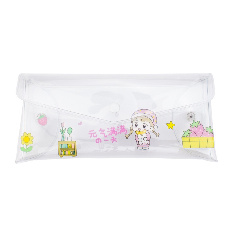ins风简约透明笔袋 韩版卡通PVC防水折叠按扣式文具化妆品收纳袋