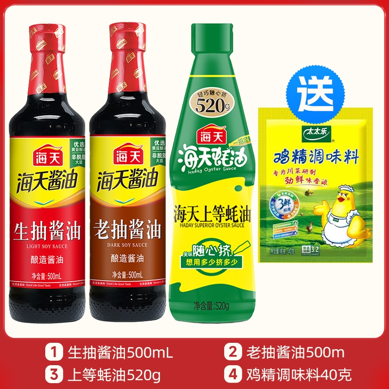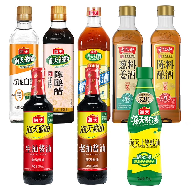 海天生抽酱油老抽精制料酒陈醋上等蚝油鸡精调味烹饪炒菜凉拌组合