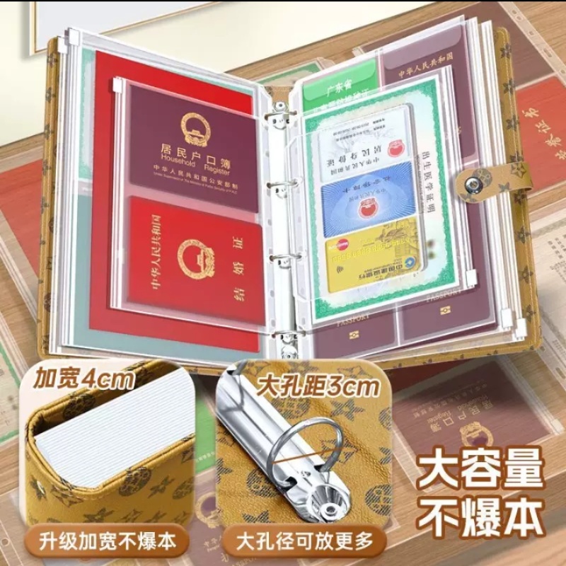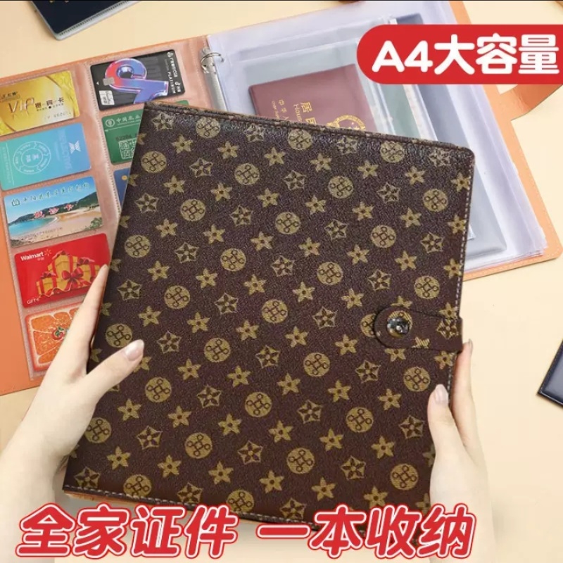 加厚家庭证件收纳包家用皮面A4b5活页多功能收纳本出生户口本证书保护套票据本重要资料卡包册大容量护照结婚