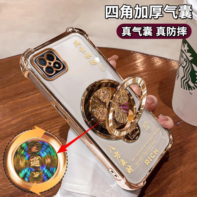 适用OPPOA72手机壳A53风生水起电镀四角防摔OPPO高级感简约气囊oppoA35解压陀螺支架A15新款保护套