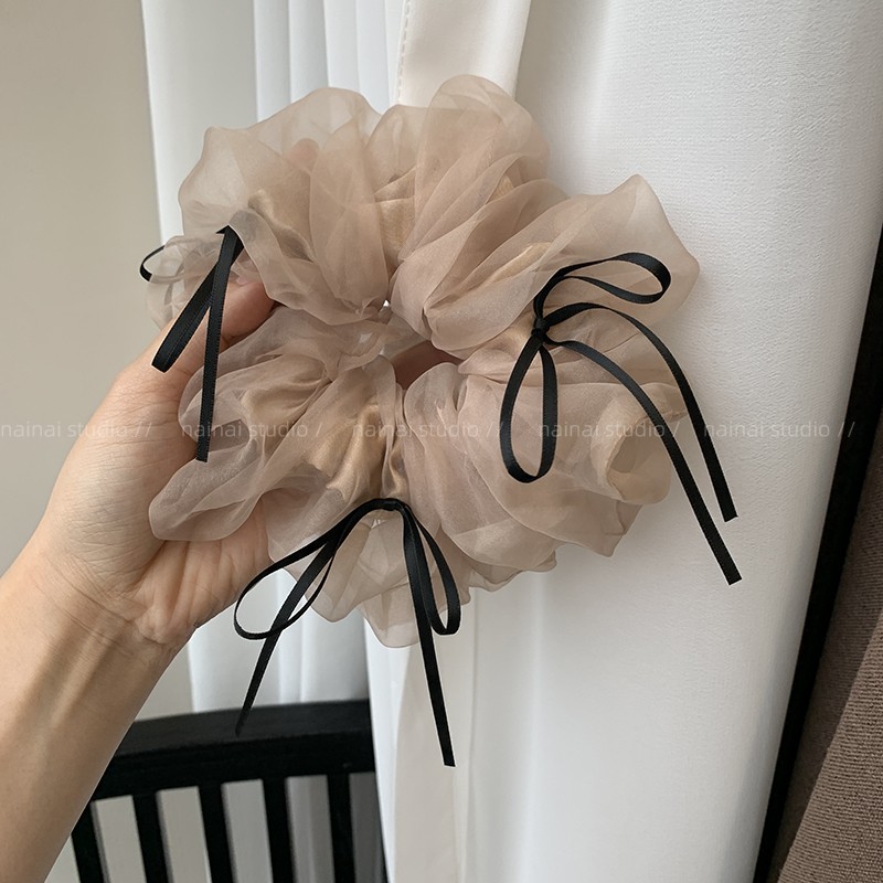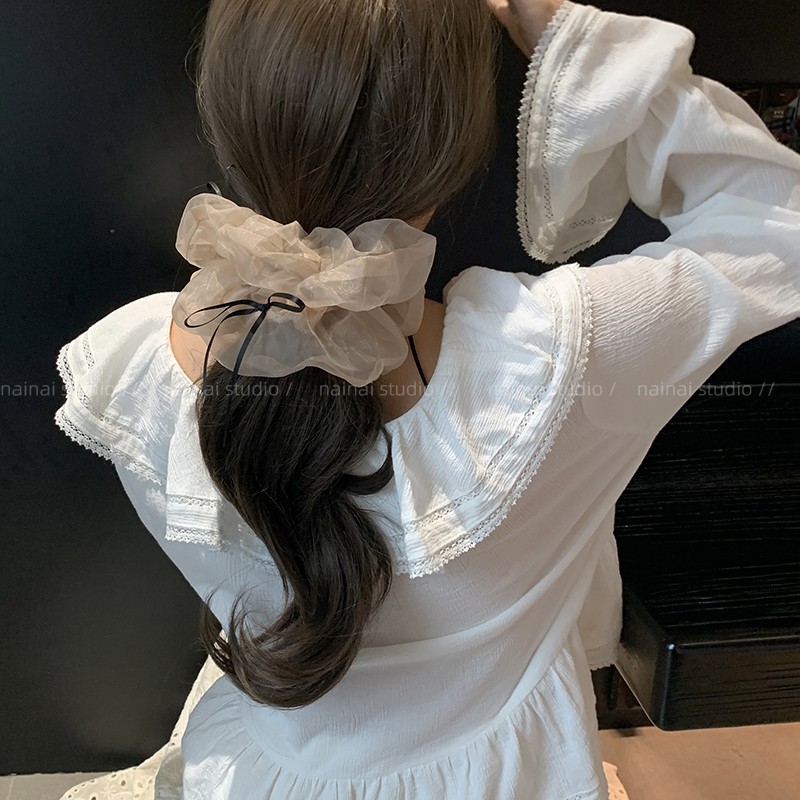 芭蕾风欧根纱大肠发圈~蝴蝶结丝带韩系ins高弹力扎头发丸子头发绳