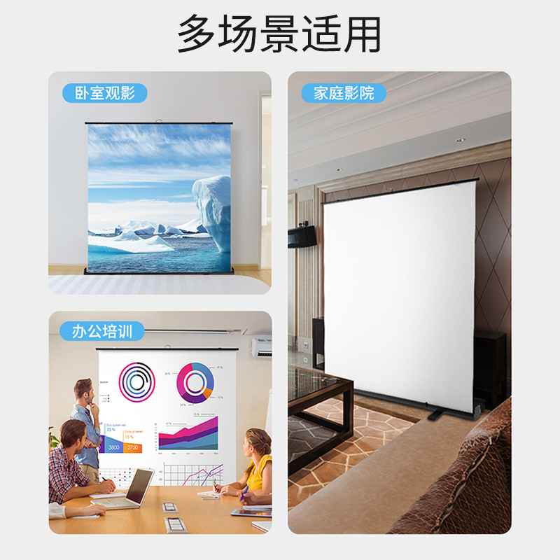 丽虹投影幕布家用高清地拉幕手拉升降便携户外露营幕免打孔免安装移动屏幕100寸120寸当贝坚果爱普生明基