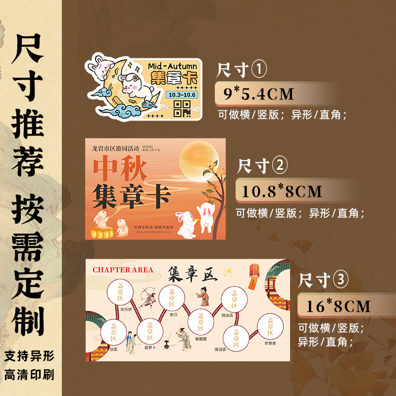 国潮风集章游园卡定制中秋节古风活动入场券设计庙会游戏通关任务趣味奖励月饼兑换国庆节盖章闯关卡片打印刷