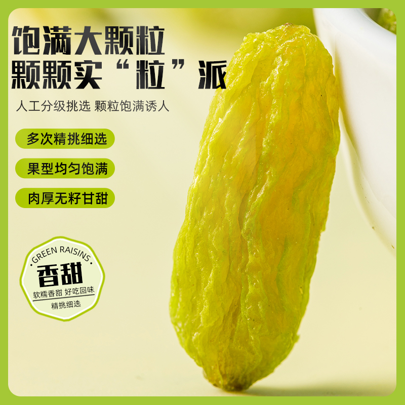 新疆特产绿香妃王葡萄干500g*2特大超大无核吐鲁番红香妃干果新货