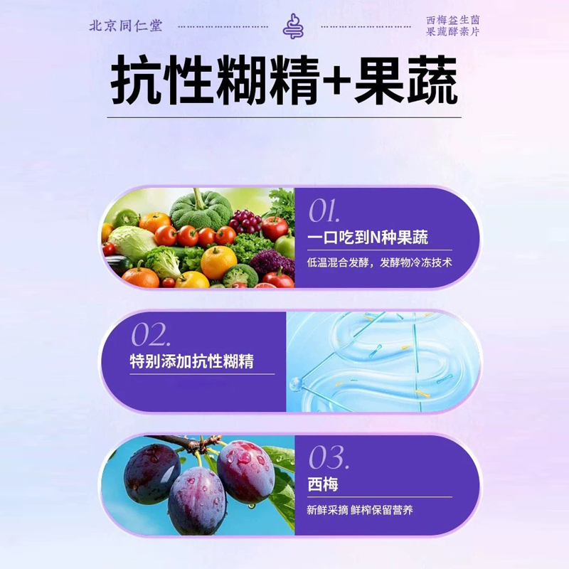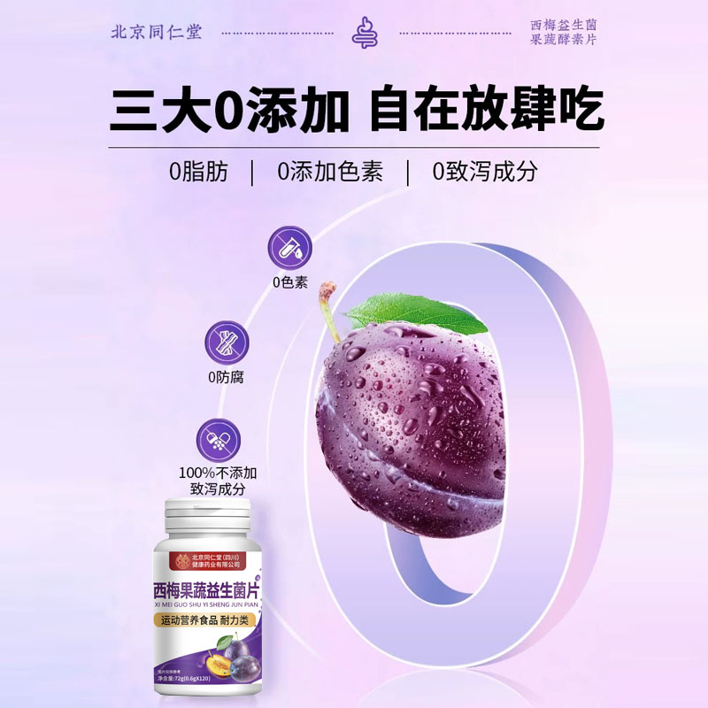 北京同仁堂西梅果蔬酵素片促排便清肠屁多胀气口臭异味增加代谢
