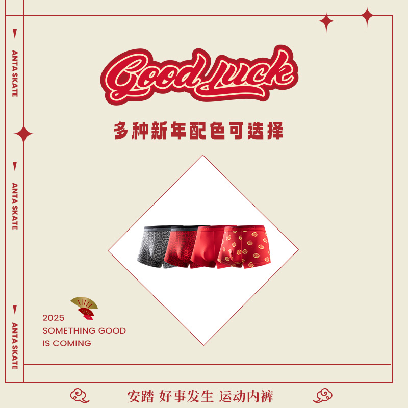 安踏好事发生丨运动内裤男跑步健身亲肤防臭吸汗新年款中腰底裤