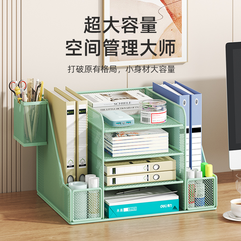 办公桌收纳置物架文件收纳盒办公用品文件架桌面书架多层大容量文件框文件夹A4纸资料档案整理架金属书立架