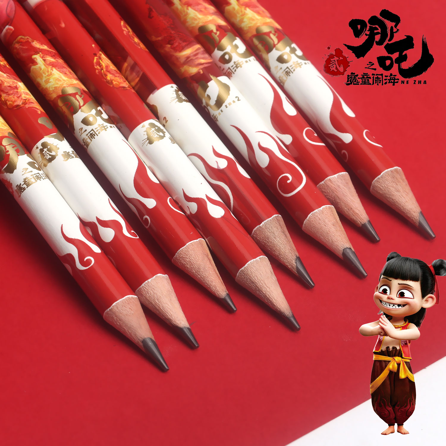 得力哪咤铅笔男孩小学生安全一年级专用2b学习用品hb2比幼儿园初学者带橡皮卡通哪吒铅笔儿童文具套装铅笔