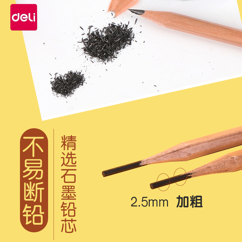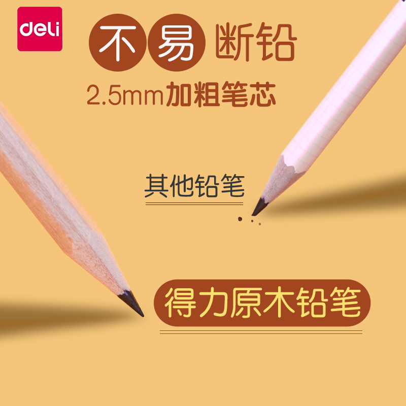 得力2b铅笔小学生儿童安全hb铅笔考试原木2比铅笔素描专用一年级2h文具用品幼儿园用初学者书写批发