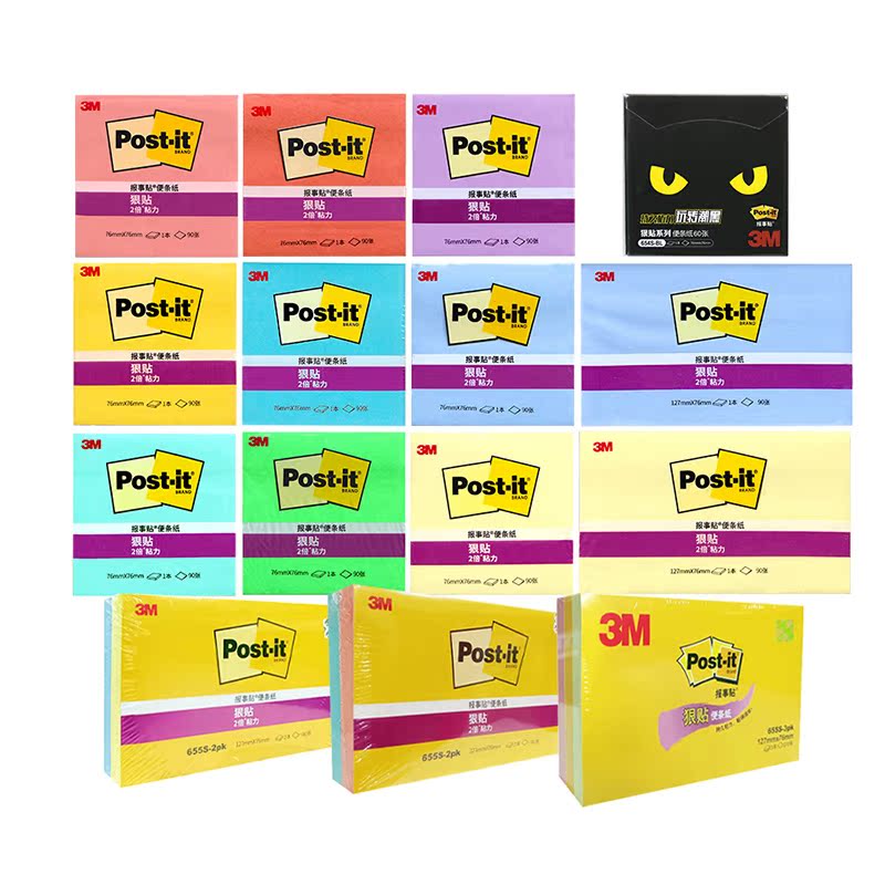 3M便利贴654S狠贴便条纸655SP炫彩10色便签本持久粘力报事贴N次贴