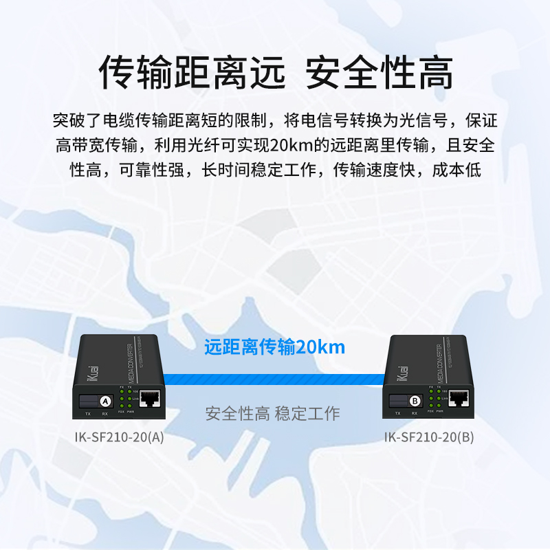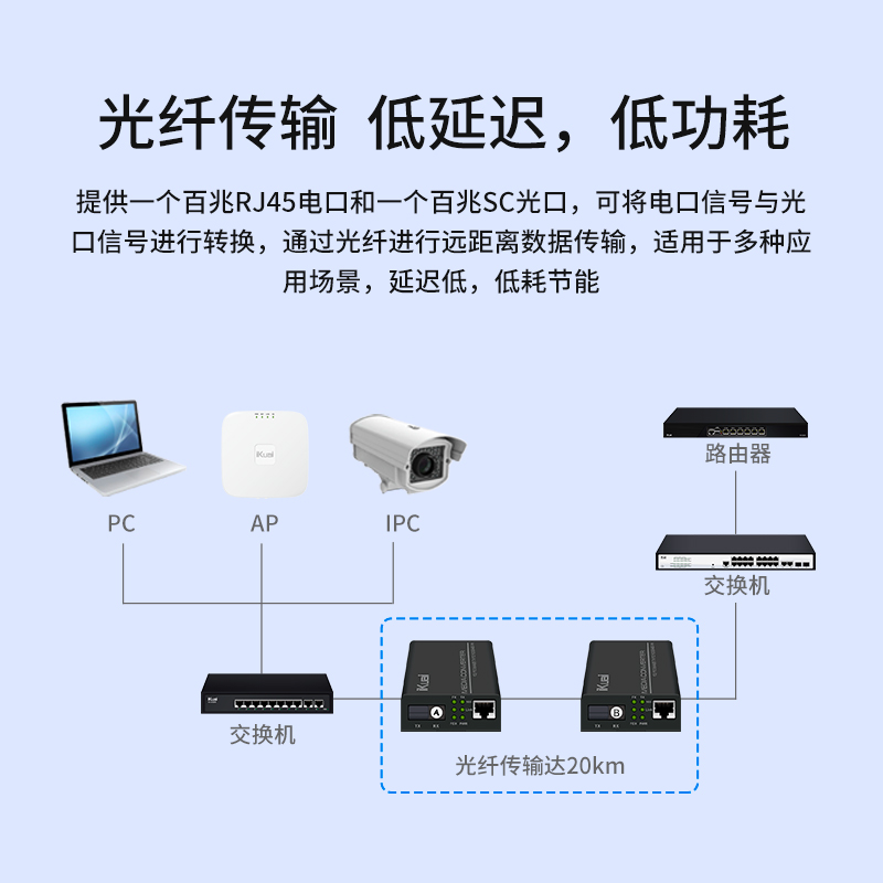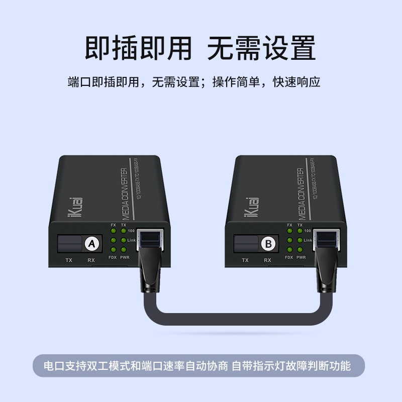 爱快(iKuai)IK-SF210-20 百兆单模单纤光纤收发器 光电转换器(一对)一光口一电口/即插即用/20km