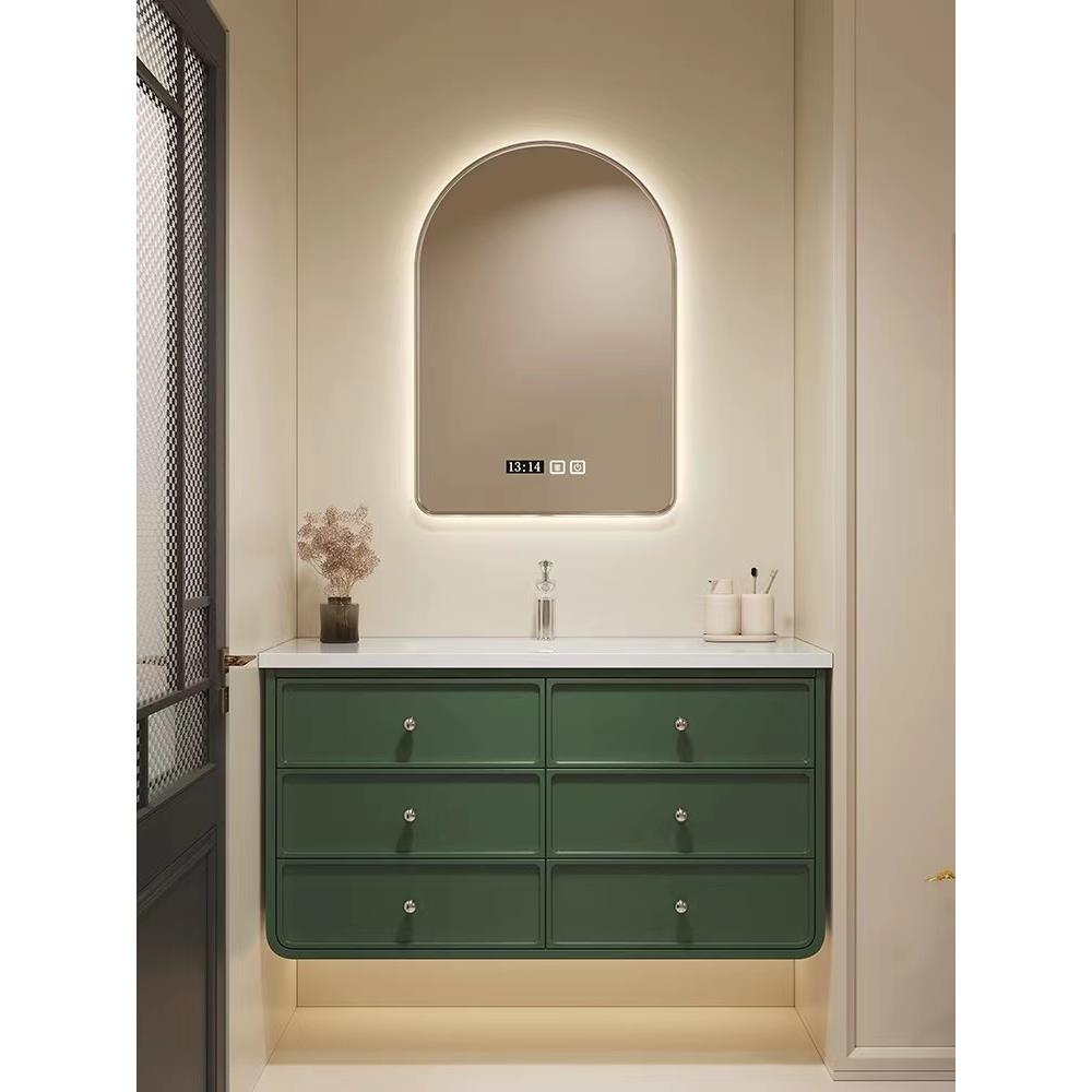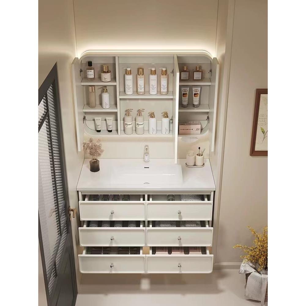 法式奶油风纯实木浴室柜组合岩板陶瓷一体盆池卫生间洗漱台洗手台饰品