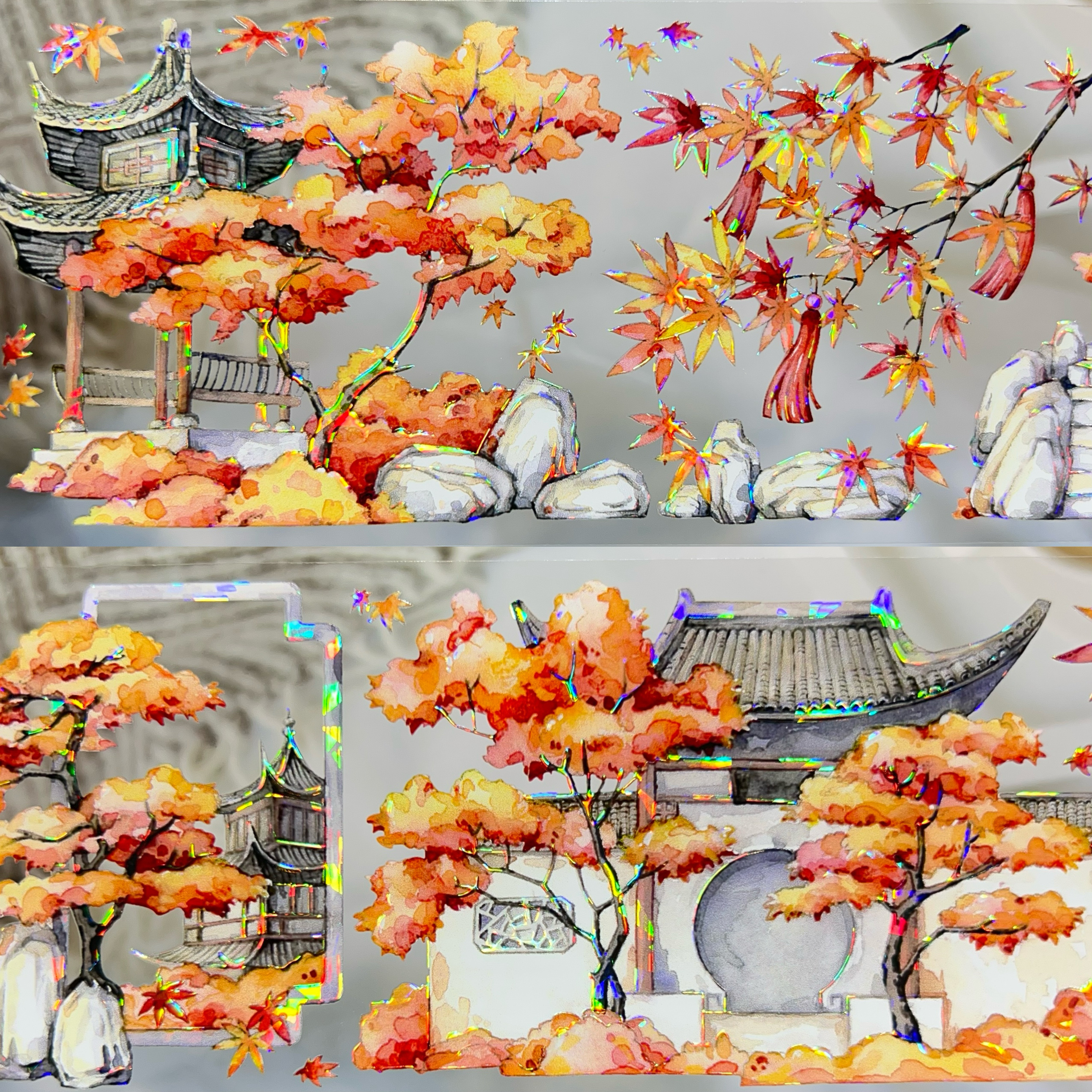 BOBO鱼分装胶带枫晚旧亭金秋叶暮枫晚林枫叶黄系叶流麻咕卡手账