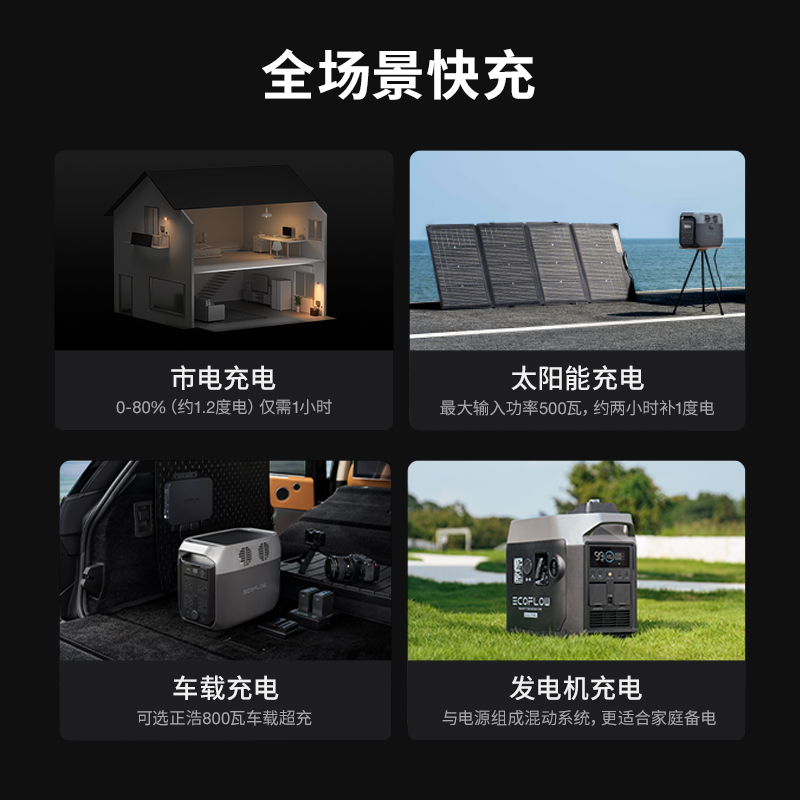 正浩EcoFlow 德DELTA3 1500 新品1.5度电大容量大功率 户外移动电源磷酸铁锂电芯 露营自驾车载摆摊停电应急