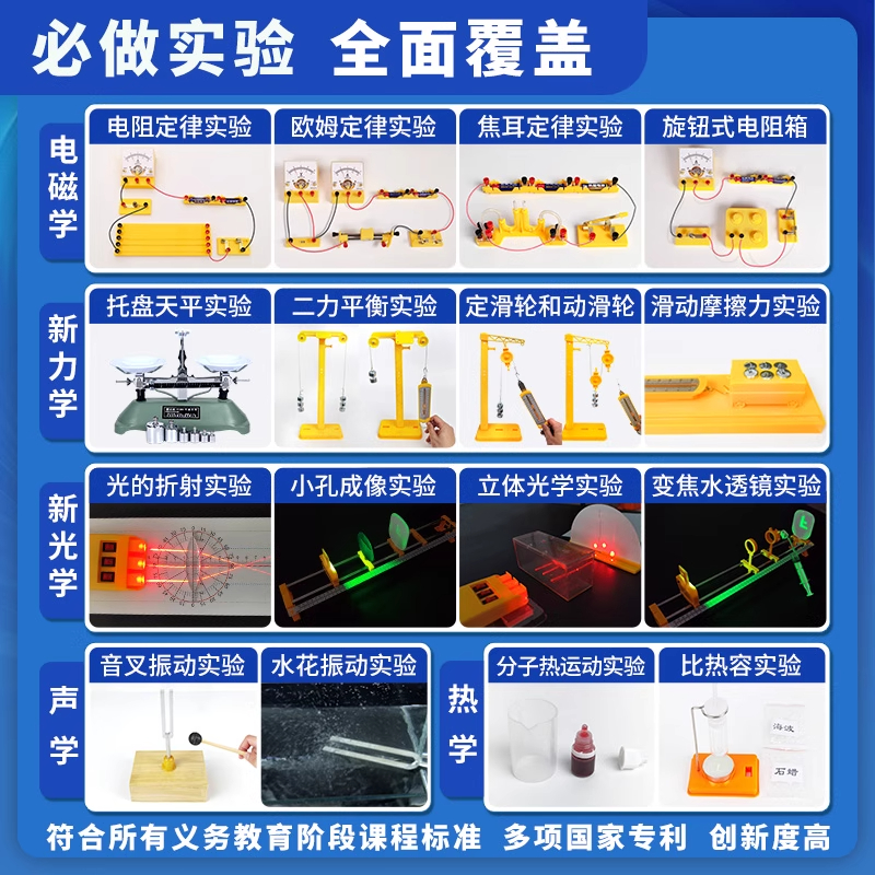 初中物理实验器材全套电磁学光学力学电学声学实验盒初二初三中考八年级九年级人教版中学学生电路试验箱套装