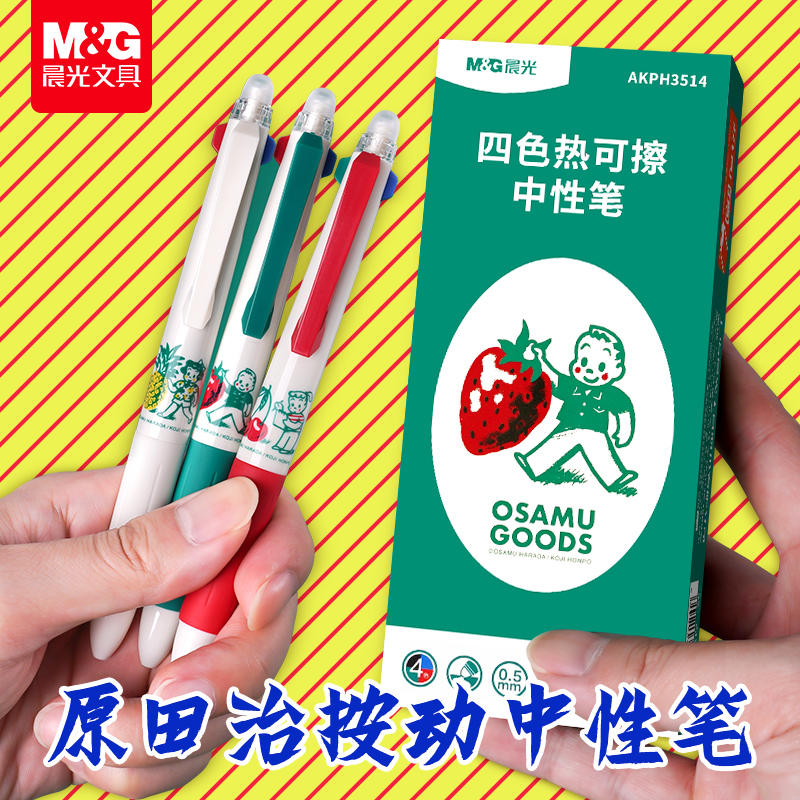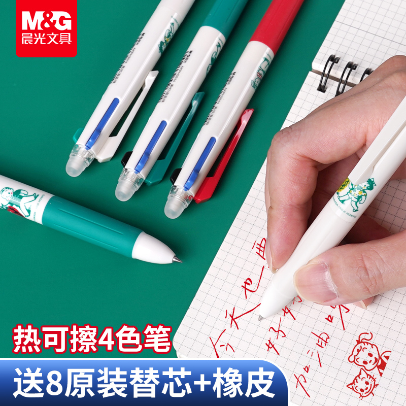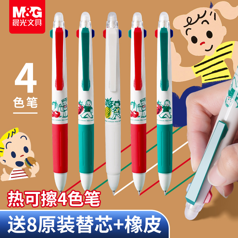 晨光原田治四色热可擦中性笔0.5mm多功能彩色中性笔四色合一可擦水笔多机能笔小学生可爱笔记神器
