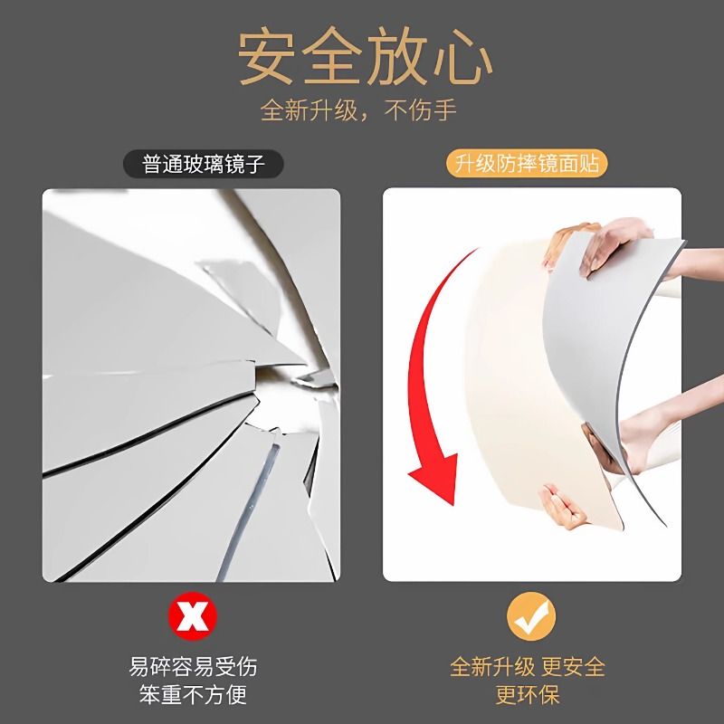 软镜子贴墙自粘亚克力全身穿衣镜高清家用墙面粘贴镜面贴纸试衣镜