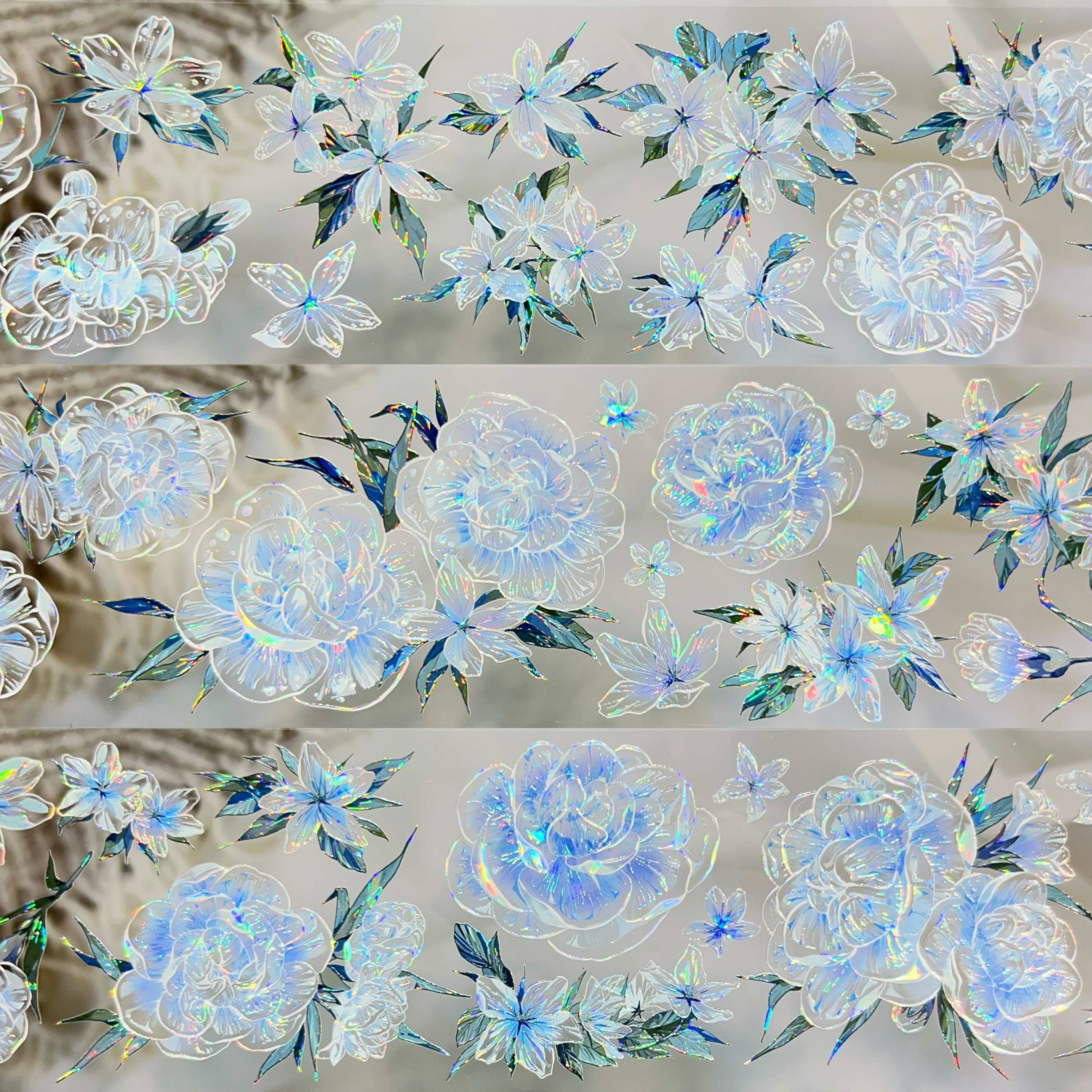 猫匠的野蔷薇分装手账胶带敛云留雾停灯抱影花朵半透蓝红流麻咕卡