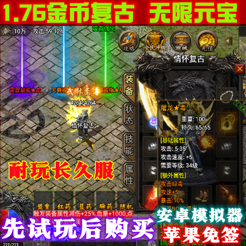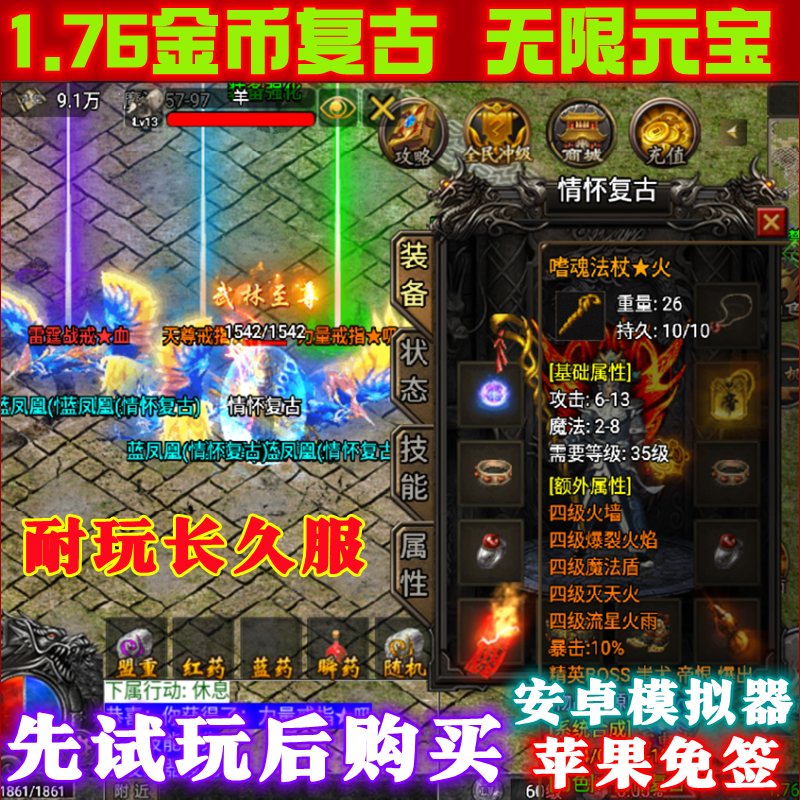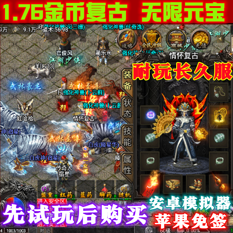 传奇手游1.76金币安卓苹果无限元宝联网热血手机游戏无后台非单机