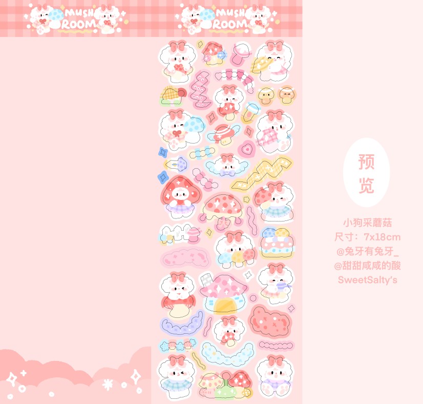小狗采蘑菇 小熊daily 咕卡原创 镭射膜亮 防水 装饰日记咕盘咕砖