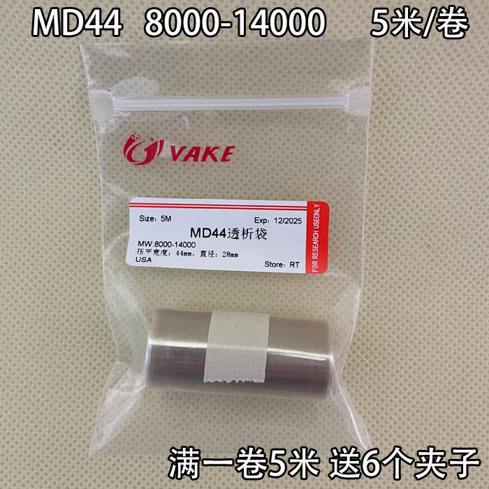 促销透析袋MD44mm分子量8000 14000透析膜实验蛋白14kd夹子除盐
