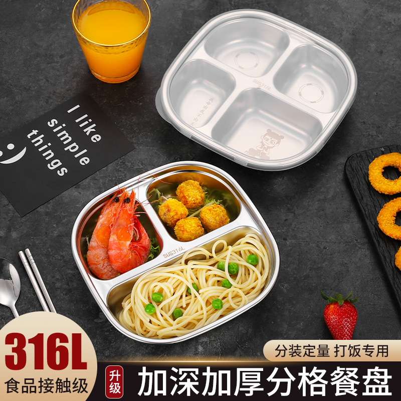 食品级304不锈钢分格餐盘带盖学生员工食堂成人家用分隔分餐盘碗