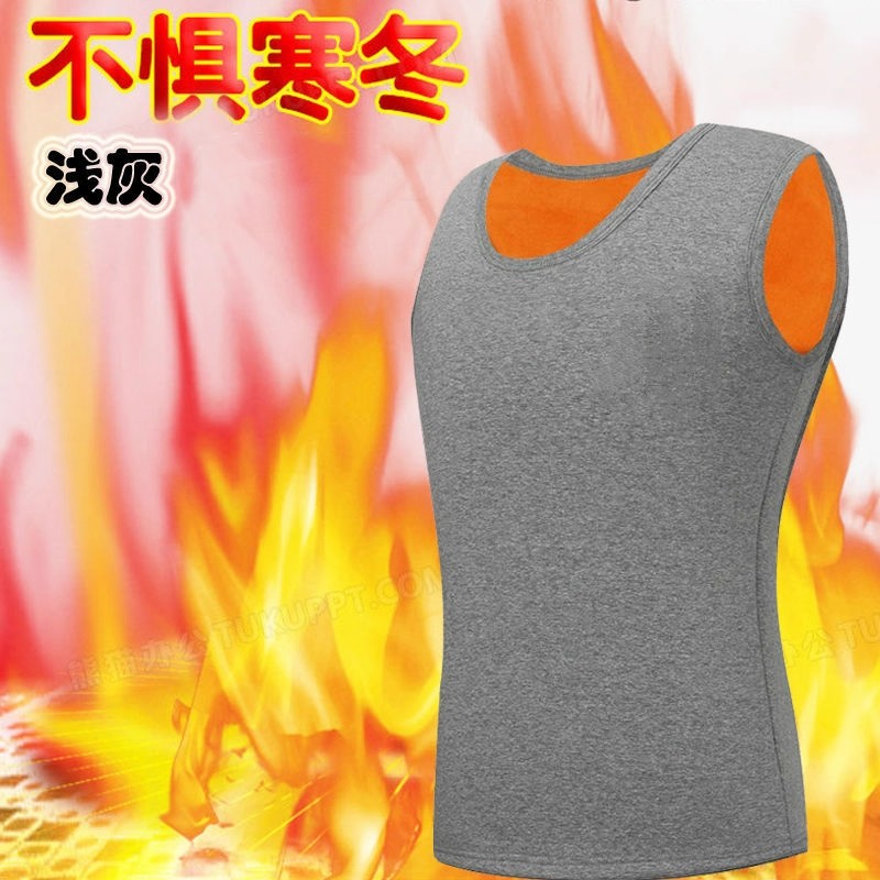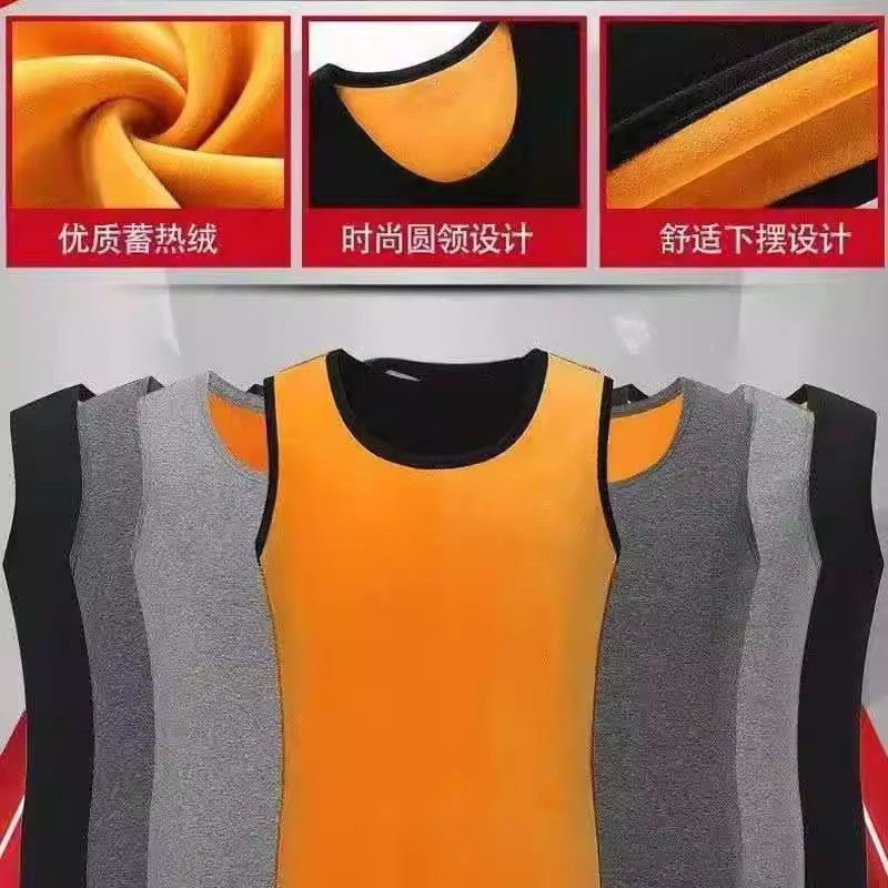 蚕丝德绒保暖背心男加绒加厚秋冬无痕发热坎肩中老年打底内穿马甲