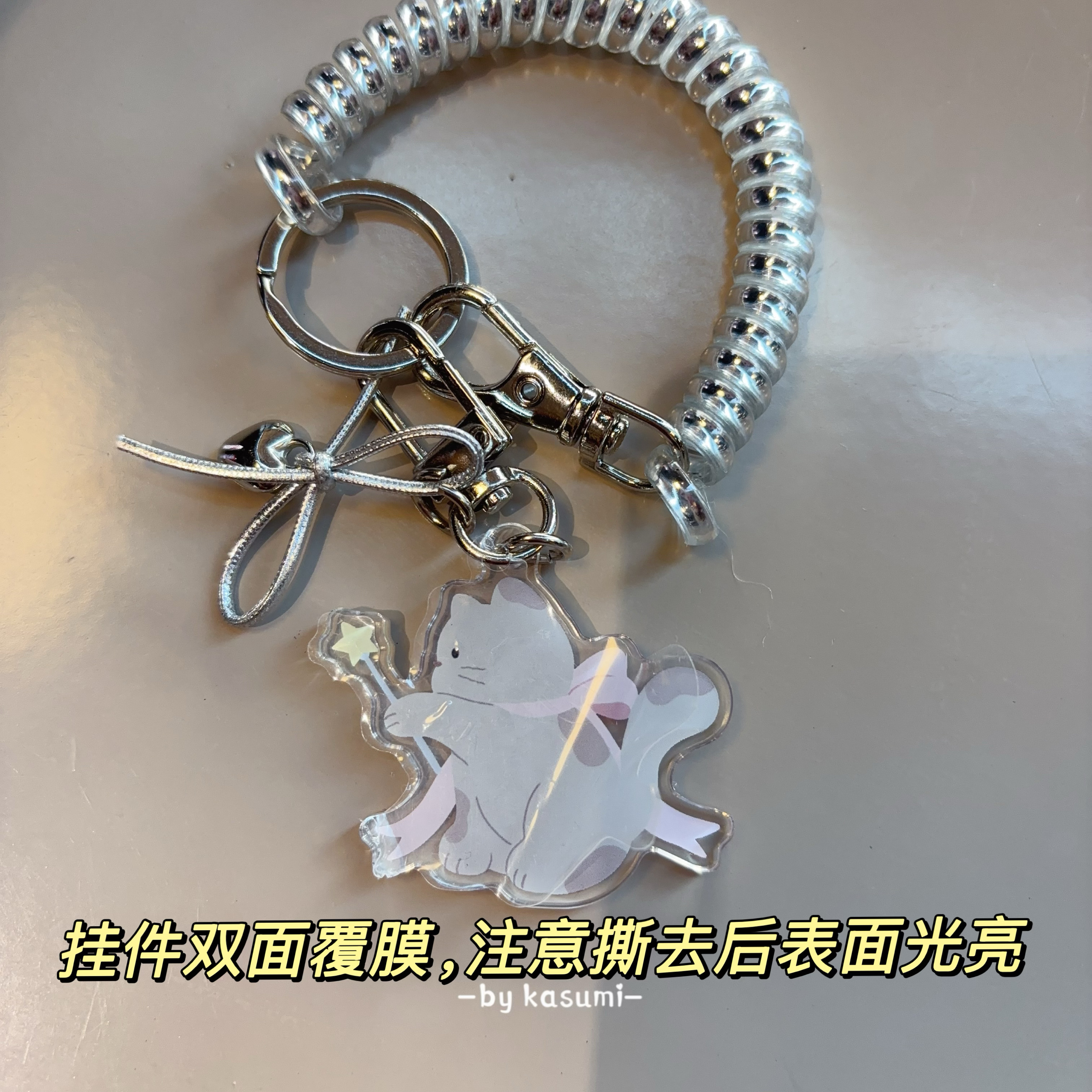 原创蝴蝶仙女小猫珠光银皮质两卡位公交饭卡身份证学生门禁工牌套