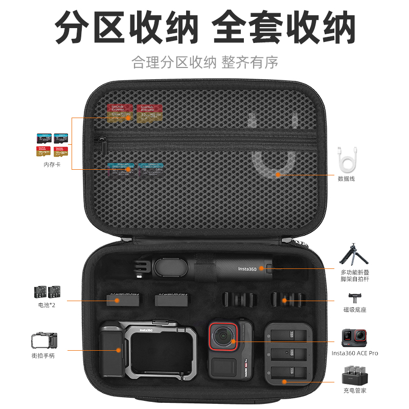 XFJI适用影石Insta360AcePro2街拍套装收纳包全能包硬壳360acepro2运动相机保护盒户外便携配件箱迷你机身包
