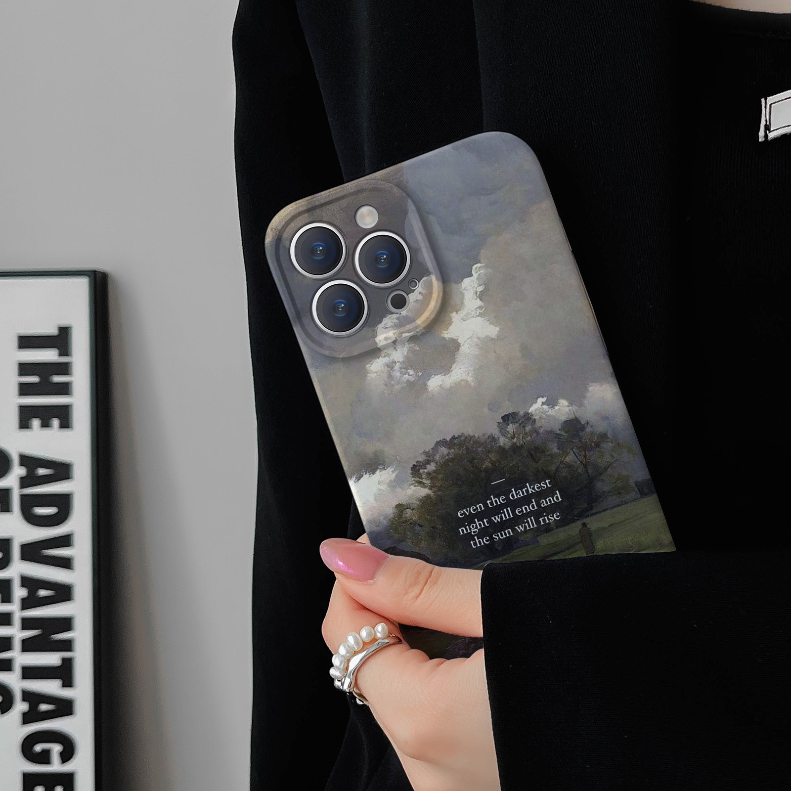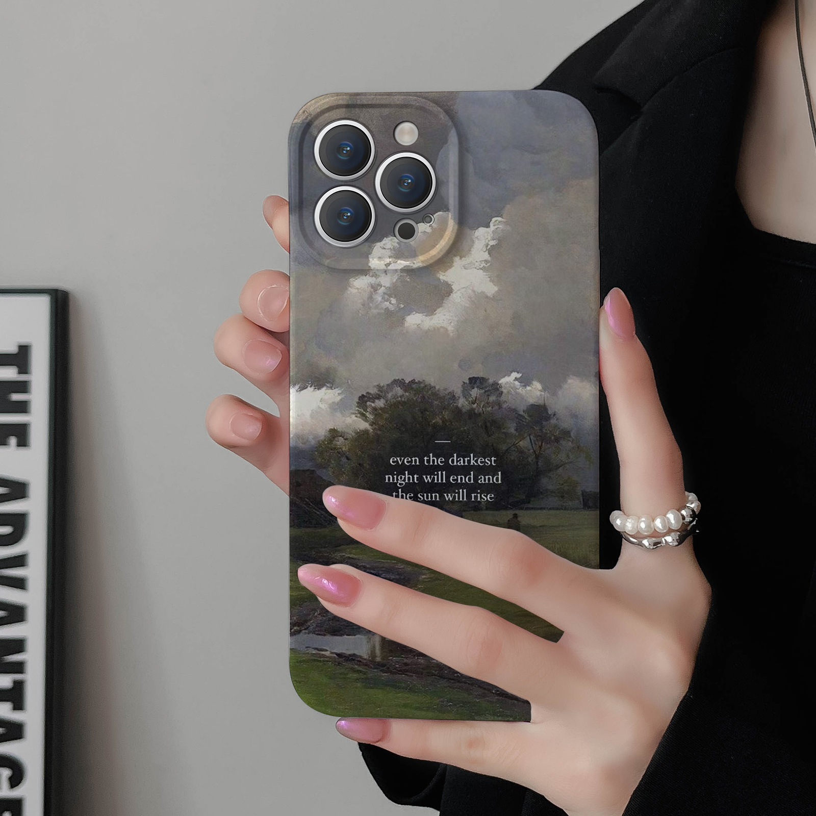 适用华为oppo苹果iqoo荣耀iphone17 16promax/15pro/14/13/12/mate70 60新款情侣手机壳plus油画白云草地风景