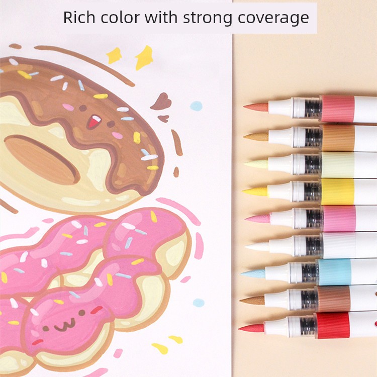 直液式丙烯马克笔软头美术专用画画笔双头儿童安全无毒可水洗学生水彩笔48色不透色可叠加白DIY涂鸦笔丙烯笔