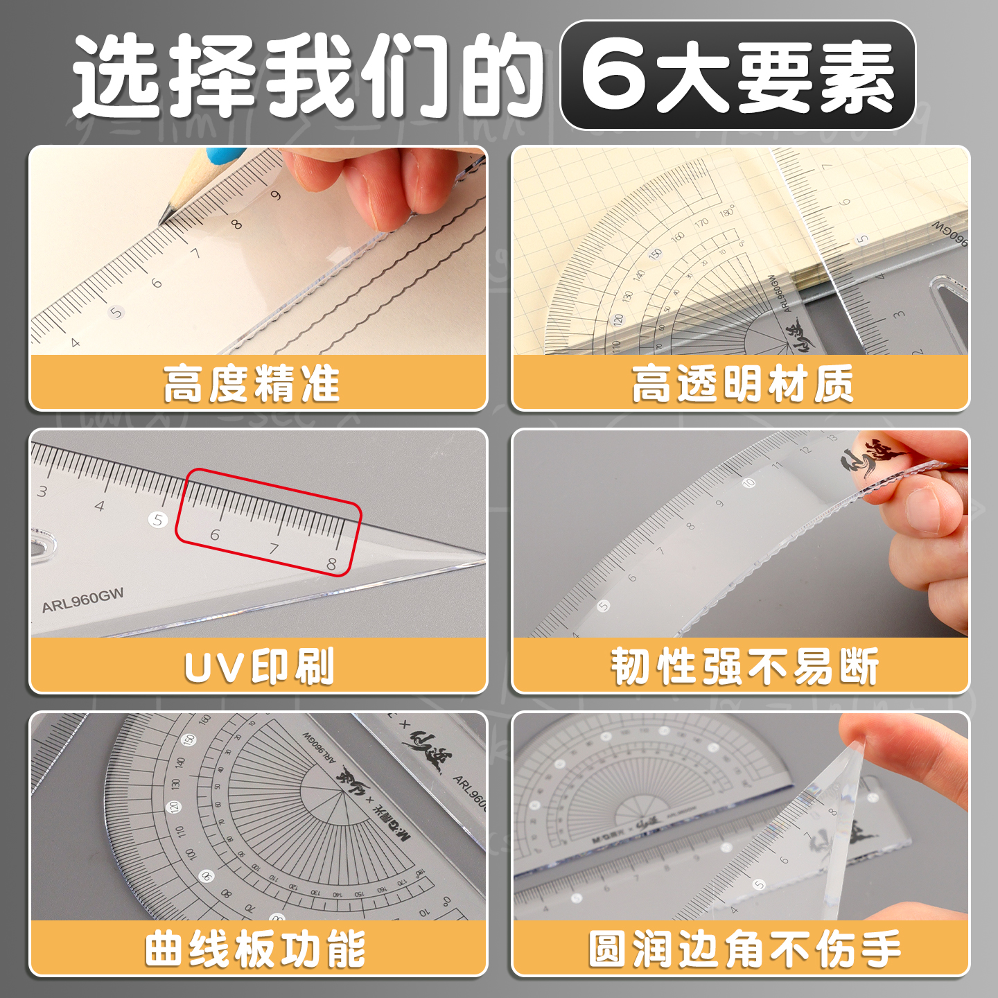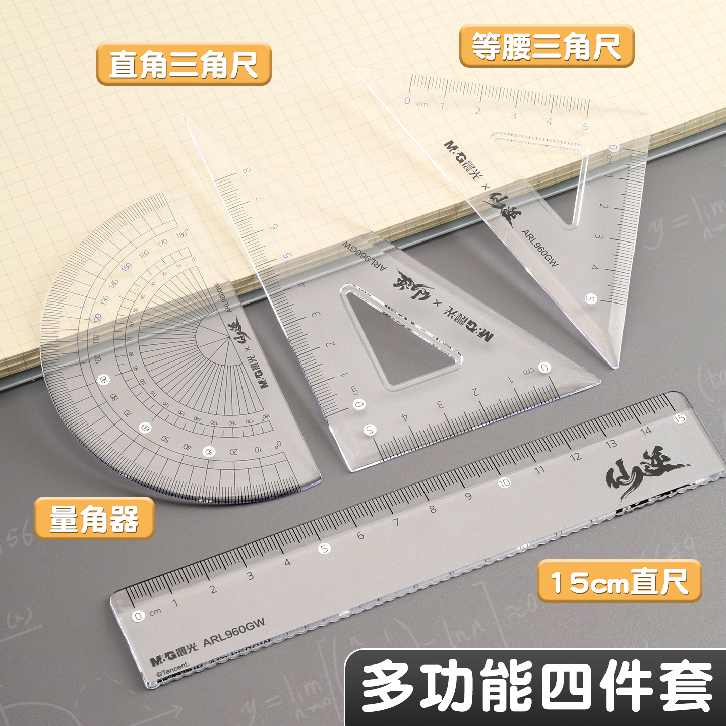 晨光仙逆联名套尺三角尺量角器4件套学生专用90°尺几何工具