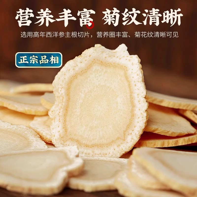 西洋参官方旗舰店正品精选足年老参泡水喝人参片花旗参切片养生