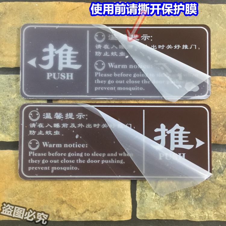 请在入睡前及外出时关好推门防止蚊虫亚克力标识牌温馨提示标志牌