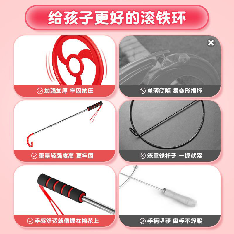 滚铁环小学生铁环滚铁圈儿童怀旧玩具圈幼儿园感统风火轮发光训练